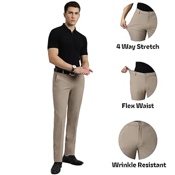 • Enhanced Flexibility: Infused with Lycra/elastane, these formal pants for men/ lycra pant for men offer exceptional stretchability, perfect for enduring long office hours with ease and mobility.
